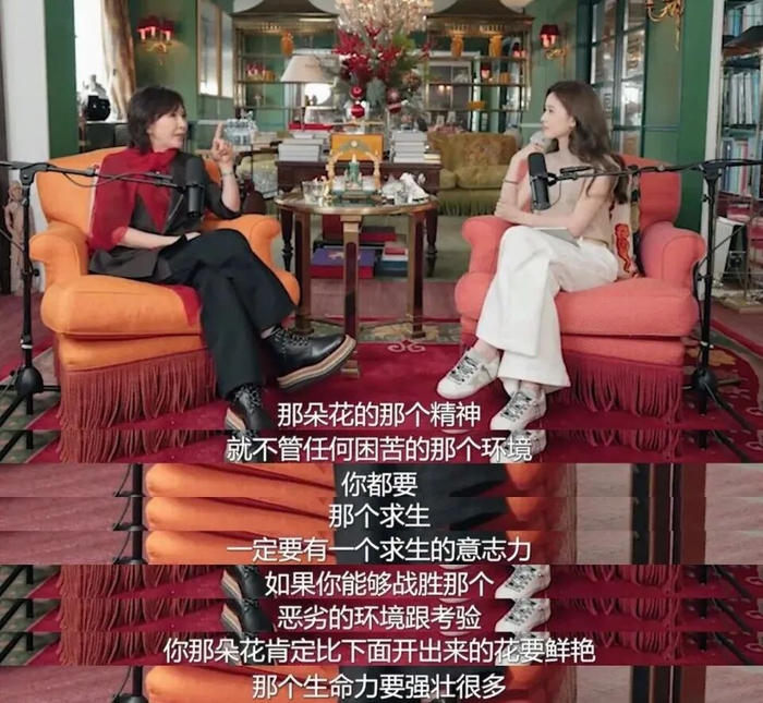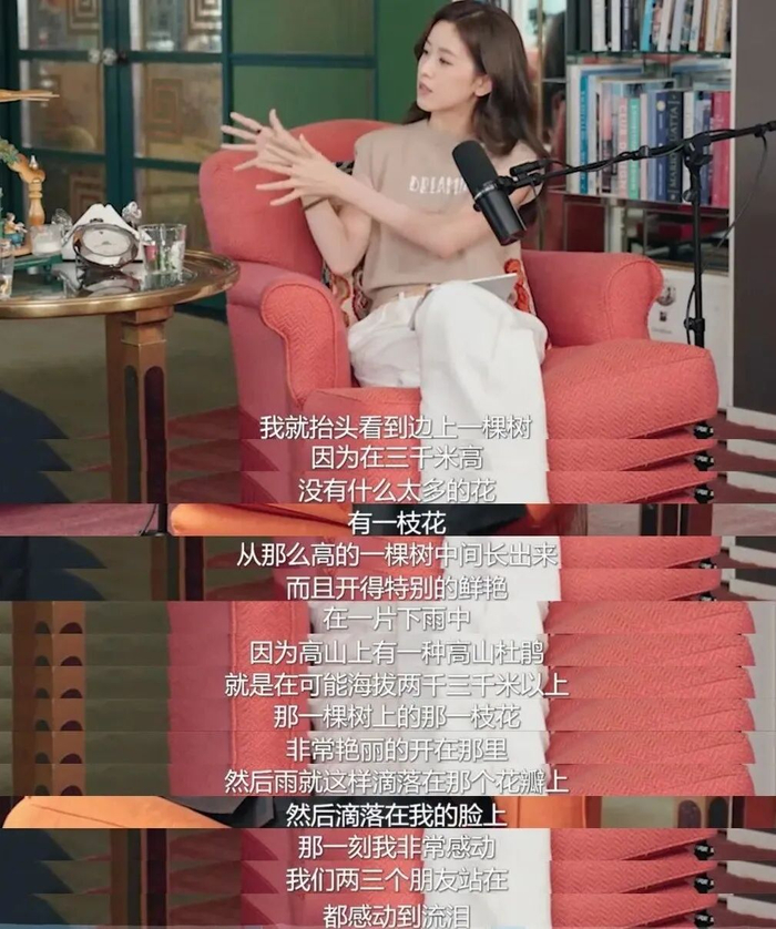 访谈里,她那一大段“不丹见花落泪”的表达,被吐槽是空洞的矫情的只属于有钱人的伤春悲秋,透露出一股何不食肉糜的味儿。